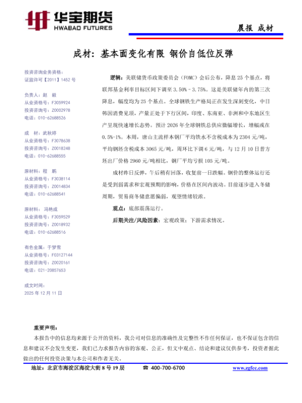 【华宝期货】【202512】成材_基本面变化有限_钢价自低位反弹-1页 证券期货研究报告