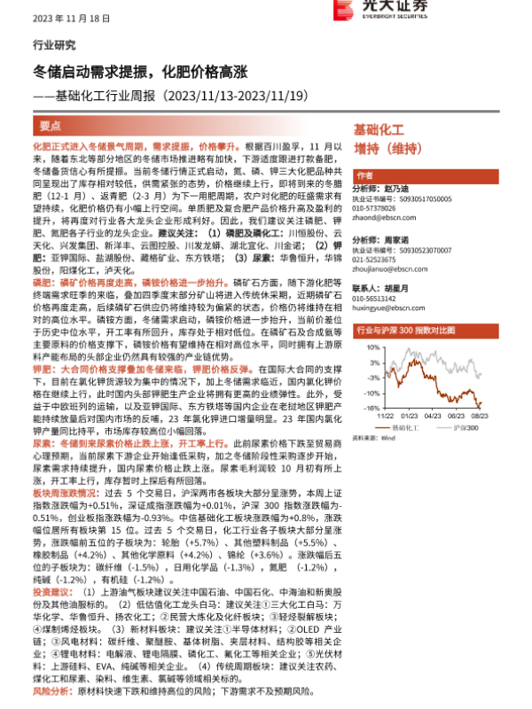 【光大证券】【20231118】基础化工行业周报:冬储启动需求提振,化肥价格高涨-26页 行业研究