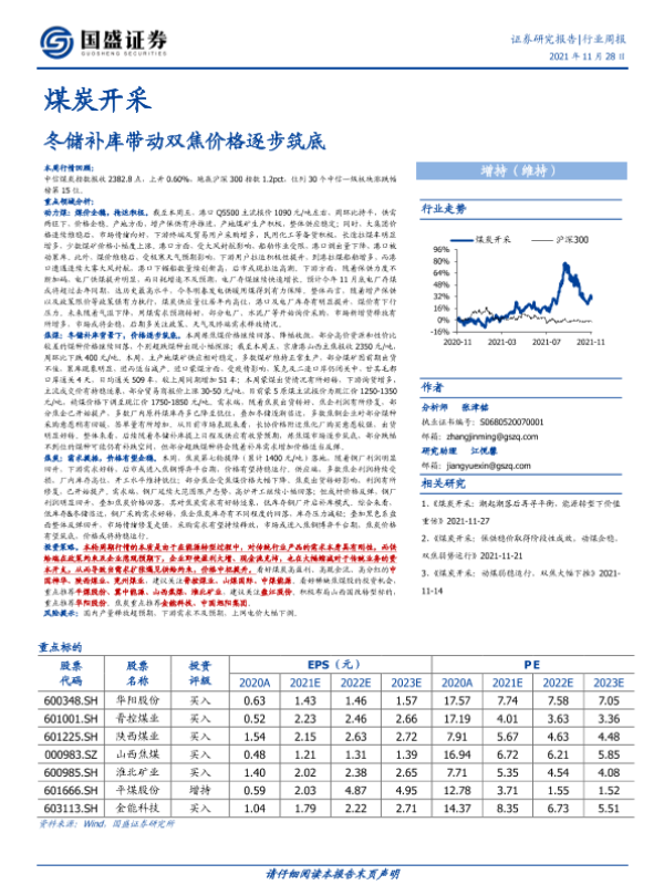 【国盛证券】【20211128】20211128-国盛证券-煤炭开采行业周报:冬储补库带动双焦价格逐步筑底-19页 行业研究