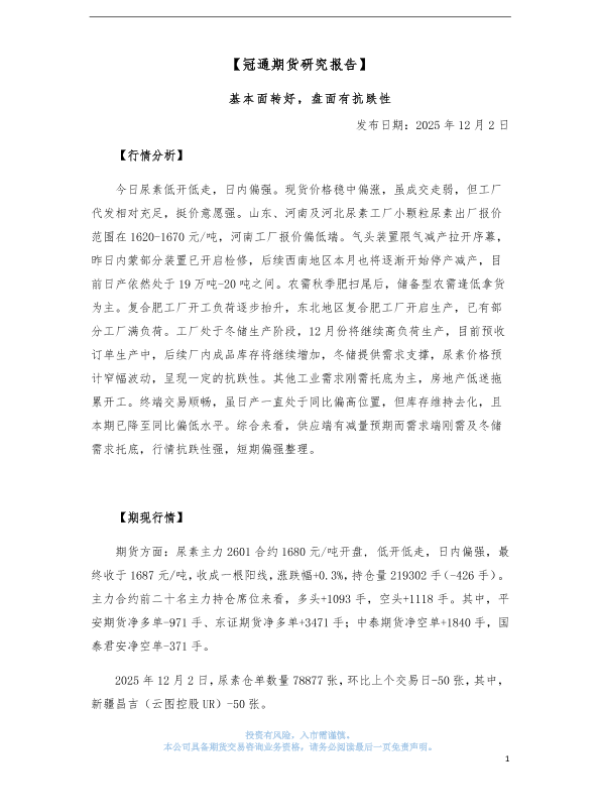 【冠通期货股份有限公司】【202512】基本面转好,盘面有抗跌性-4页 证券期货研究报告