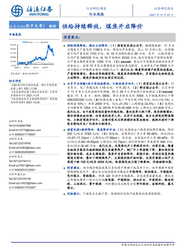 【海通证券】【20211107】20211107-海通证券-煤炭行业周报:供给持续释放,煤焦开启降价-2页 行业研究