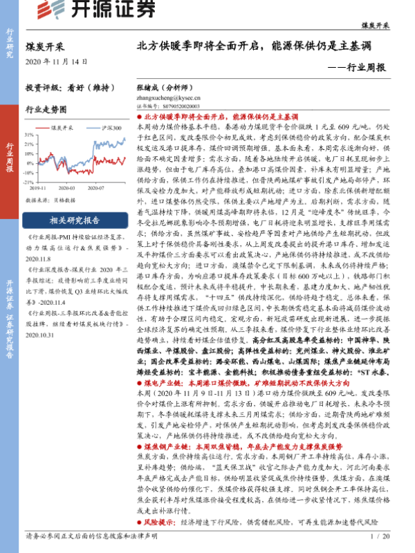 【开源证券】【20201114】煤炭开采行业周报:北方供暖季即将全面开启,能源保供仍是主基调-20页 行业研究