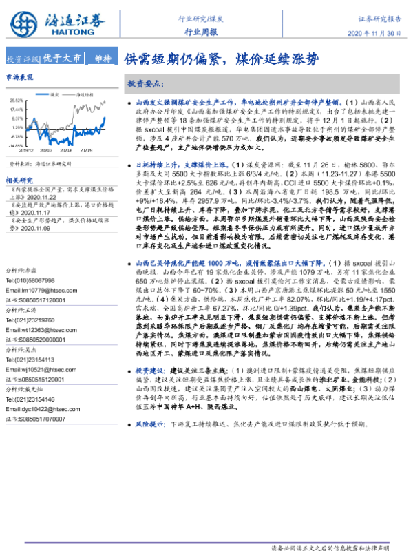 【海通证券】【20201130】20201130-海通证券-煤炭行业周报:供需短期仍偏紧,煤价延续涨势-2页 行业研究