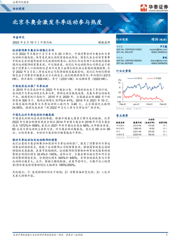 【华泰证券】【20220210】纺织服装动态点评:北京冬奥会激发冬季运动参与热度-6页 行业研究