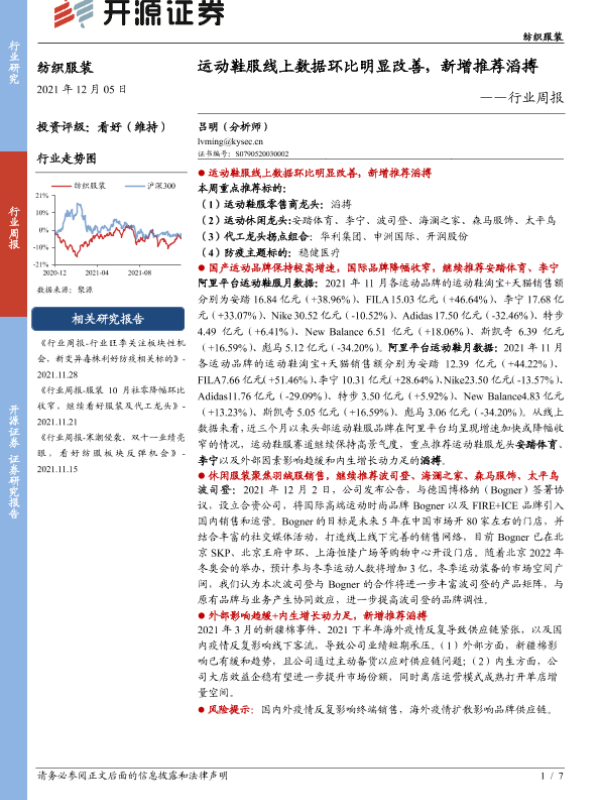 【开源证券】【20211205】纺织服装行业周报:运动鞋服线上数据环比明显改善,新增推荐滔搏-7页 行业研究