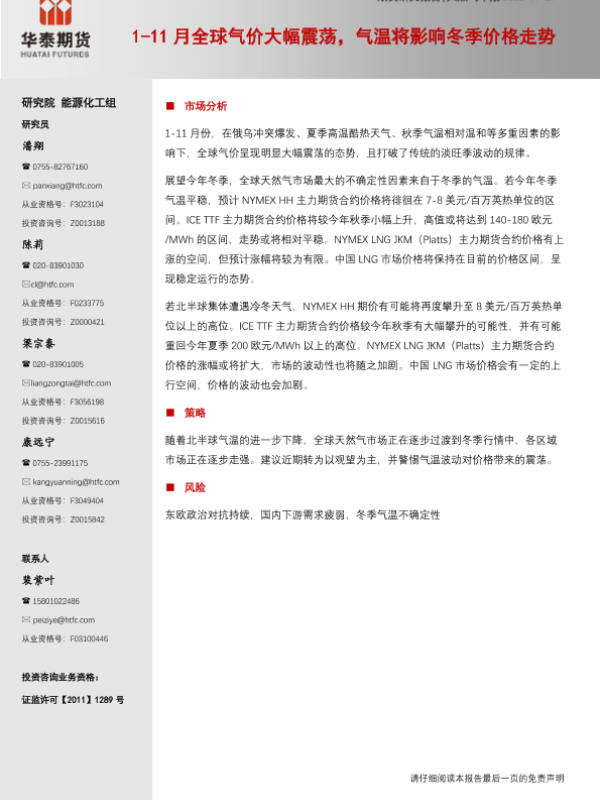 【华泰期货】【20221127】天然气年报:1_11月全球气价大幅震荡,气温将影响冬季价格走势-15页 行业研究