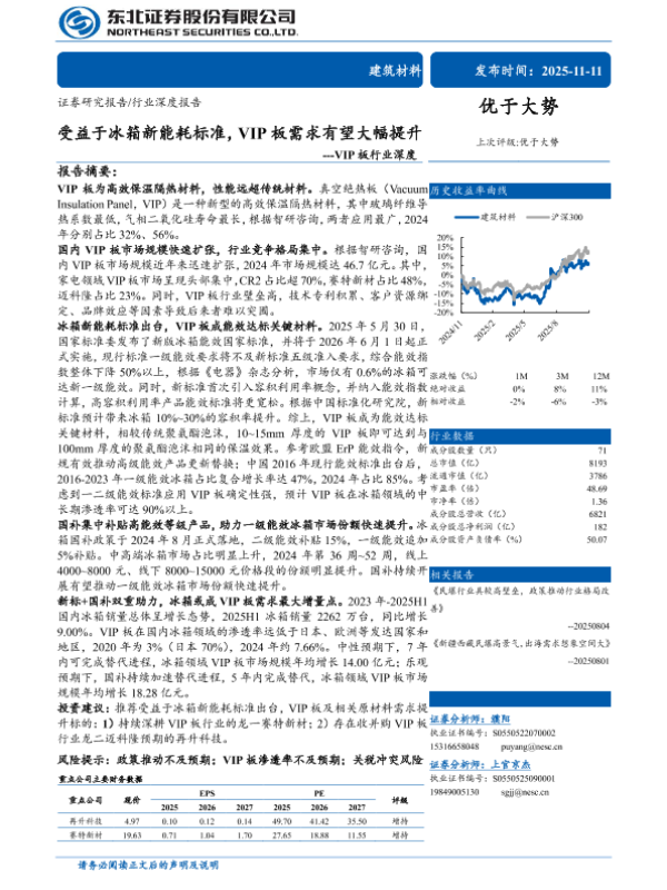 【东北证券】【2025】受益于冰箱新能耗标准,VIP板需求有望大幅提升-33页 证券期货研究报告