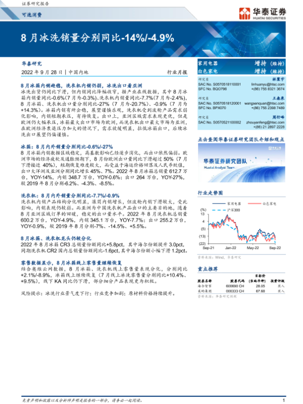 【华泰证券】【20220928】20220928-华泰证券-可选消费行业月报:8月冰洗销量分别同比-14%-4.9%-16页 行业研究