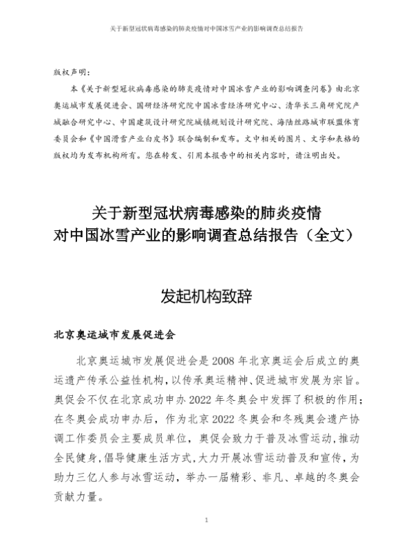 【北京奥运城市发展促进会】【20200424】关于新型冠状病毒感染的肺炎疫情对中国冰雪产业的影响调查总结报告(全文)-25页 市场调研