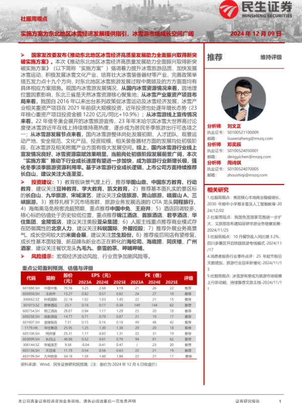 【民生证券】【20241209】社服周观点:实施方案为东北地区冰雪经济发展提供指引,冰雪游市场成长空间广阔-22页 行业研究