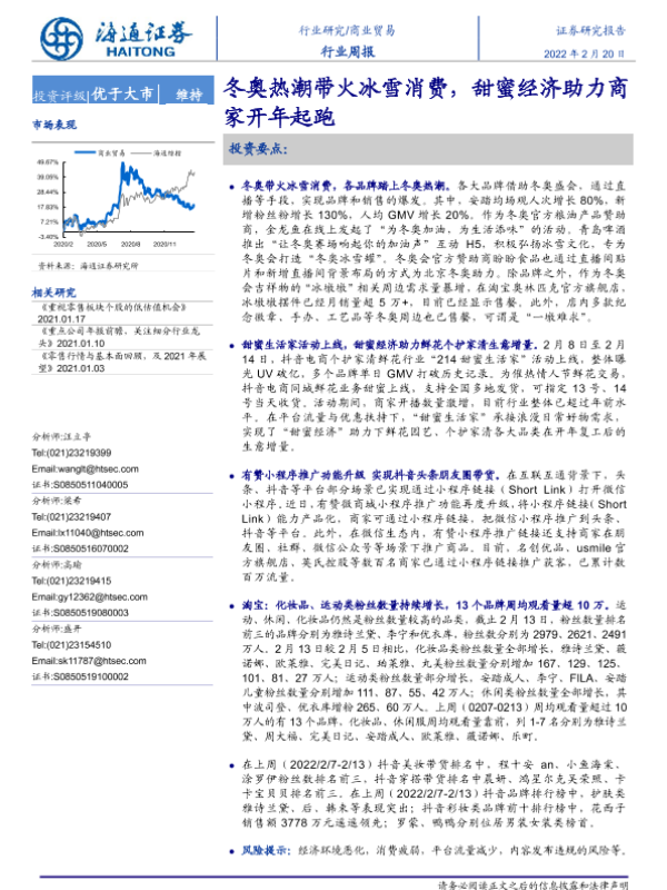 【海通证券】【20220220】商业贸易行业周报:冬奥热潮带火冰雪消费,甜蜜经济助力商家开年起跑-10页 行业研究