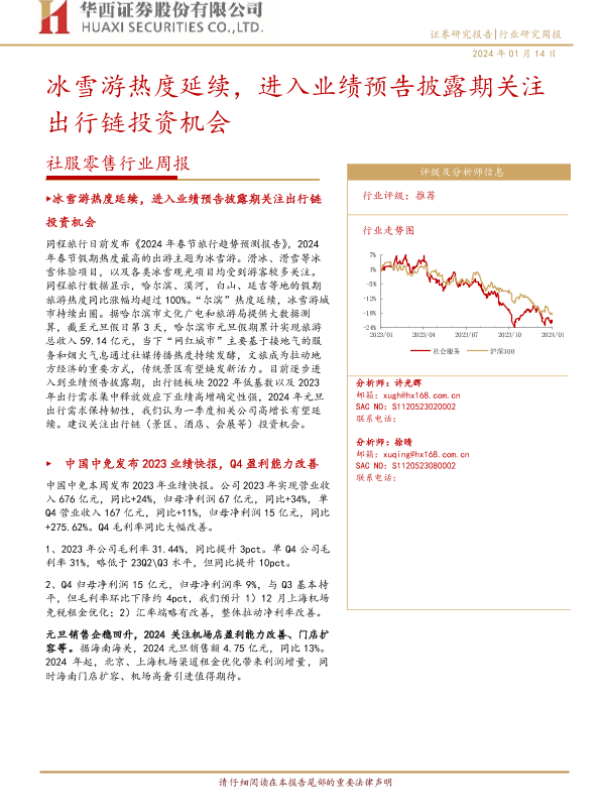 【华西证券】【20240114】社服零售行业周报:冰雪游热度延续,进入业绩预告披露期关注出行链投资机会-17页 行业研究