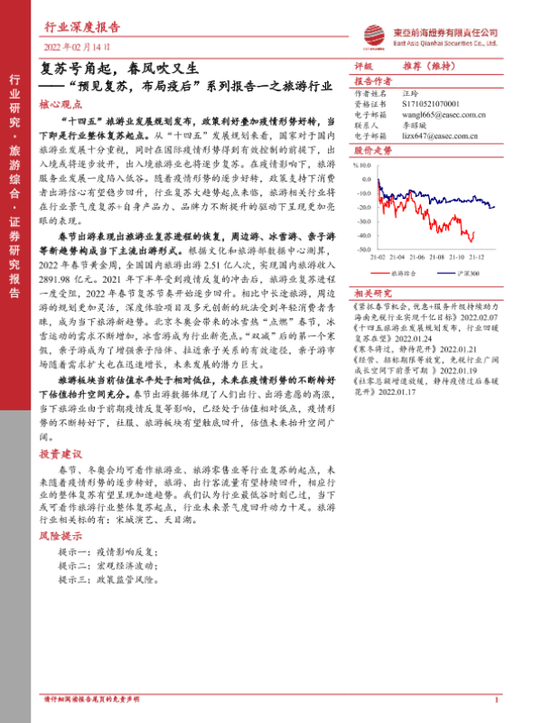【东亚前海证券】【20220214】预见复苏,布局疫后——旅游行业:复苏号角起,春风吹又生-27页 行业研究