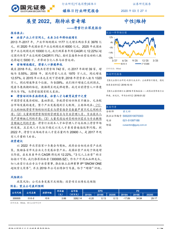 【国元证券】【20200327】展望2022,期待冰雪奇缘——滑雪行业深度报告-24页 行业研究