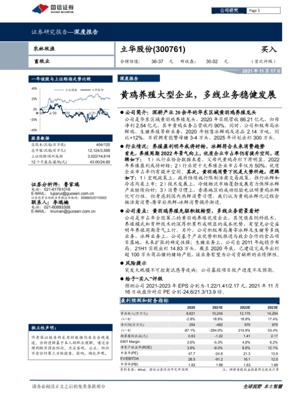 【国信证券】【20211117】20211117-国信证券-立华股份-300761.SZ-黄鸡养殖大型企业,多线业务稳健发展-30页 行业研究