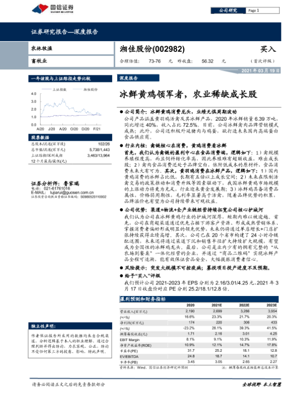 【国信证券】【20210319】湘佳股份-002982.SZ-冰鲜黄鸡领军者,农业稀缺成长股-30页 行业研究