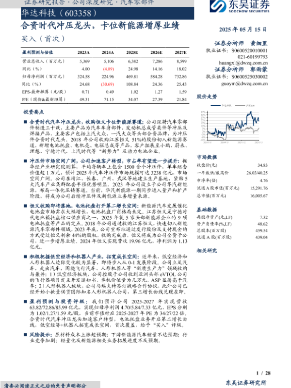【东吴证券】【20250515】华达科技-合资时代冲压龙头,卡位新能源增厚业绩-28页 证券期货研究报告