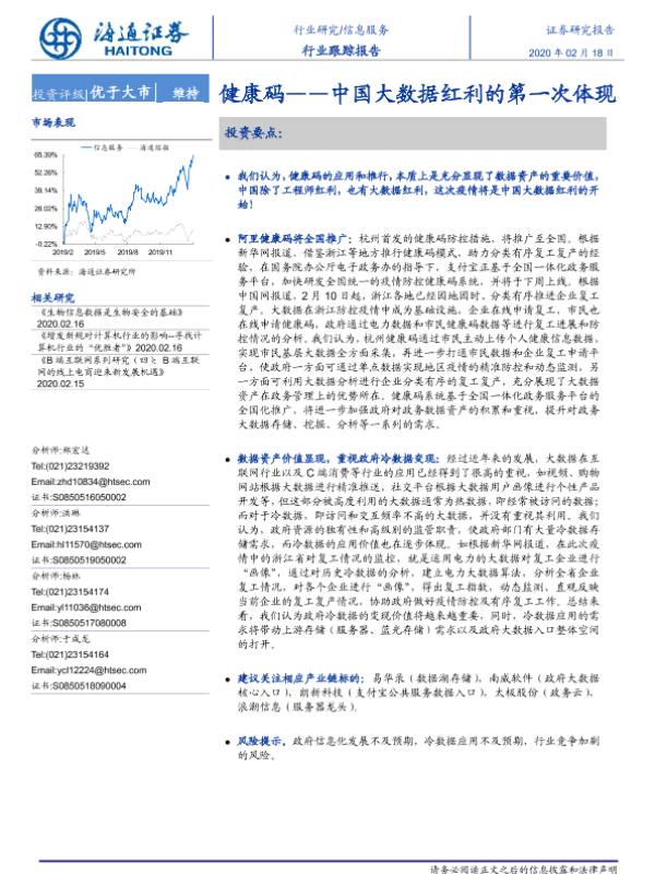 【海通证券】【20200218】信息服务行业跟踪报告:健康码——中国大数据红利的第一次体现-6页 行业研究