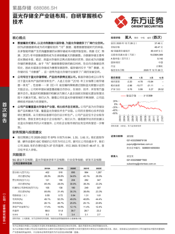 【东方证券】【20201228】紫晶存储(688086)蓝光存储全产业链布局,自研掌握核心技术-26页 行业研究