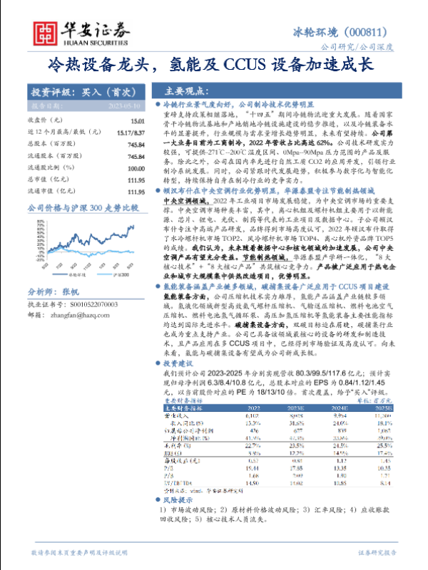 【华安证券】【20230510】冰轮环境(000811)冷热设备龙头,氢能及CCUS设备加速成长-39页 行业研究