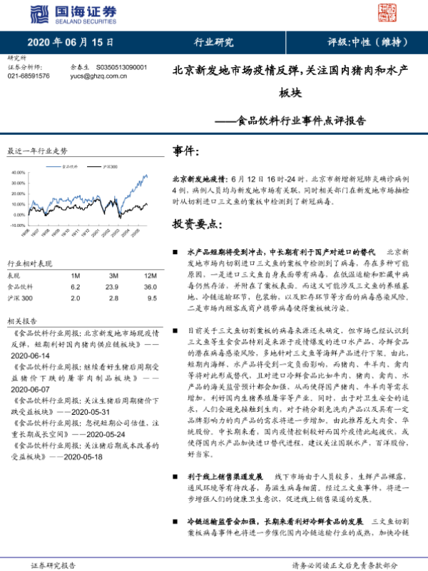 【国海证券】【20200615】食品饮料行业事件点评报告:北京新发地市场疫情反弹,关注国内猪肉和水产板块-4页 行业研究