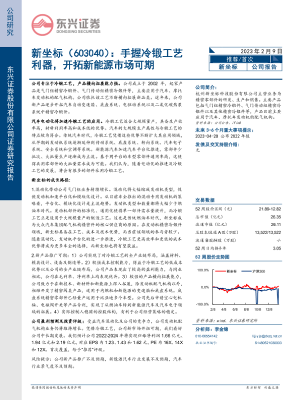 【东兴证券】【20230209】新坐标(603040):手握冷锻工艺利器,开拓新能源市场可期-18页 行业研究