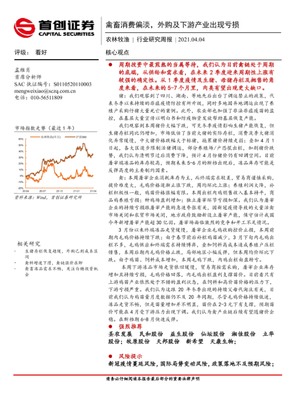 【首创证券】【20210404】20210404-首创证券-农林牧渔行业研究周报:禽畜消费偏淡,外购及下游产业出现亏损-24页 行业研究
