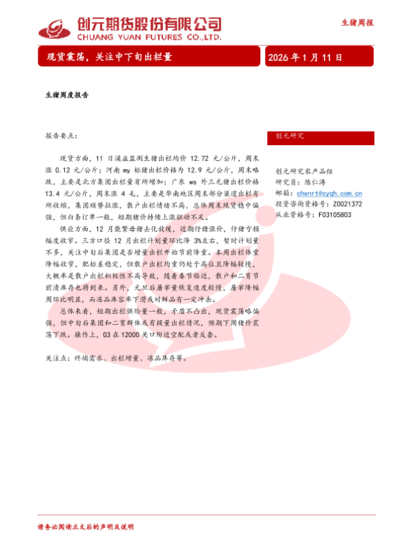 【创元研究】【202601】生猪周报-17页 证券期货研究报告