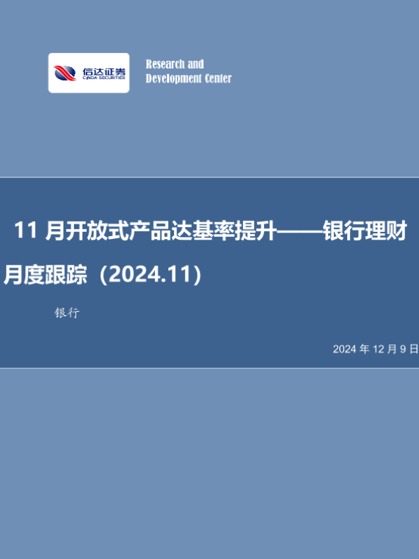 【信达证券】【20241209】11月开放式产品达基率提升——银行理财月度跟踪-25页 行业研究