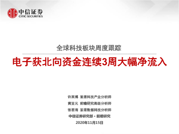 【中信证券】【20201115】全球科技板块周度跟踪:电子获北向资金连续3周大幅净流入-41页 行业研究