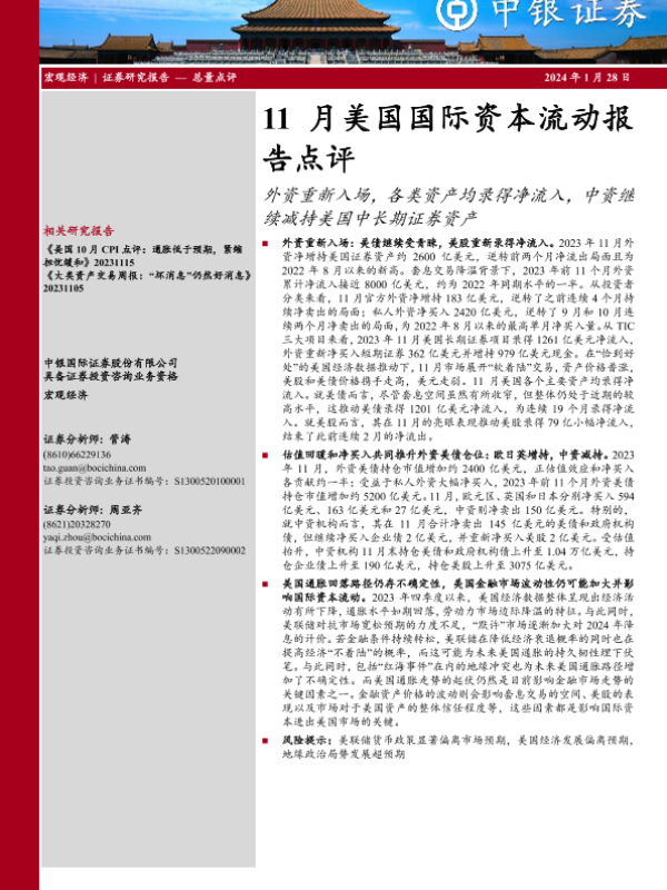 【中银证券】【20240128】11月美国国际资本流动报告点评:外资重新入场,各类资产均录得净流入,中资继续减持美国中长期证券资产-13页 行业研究