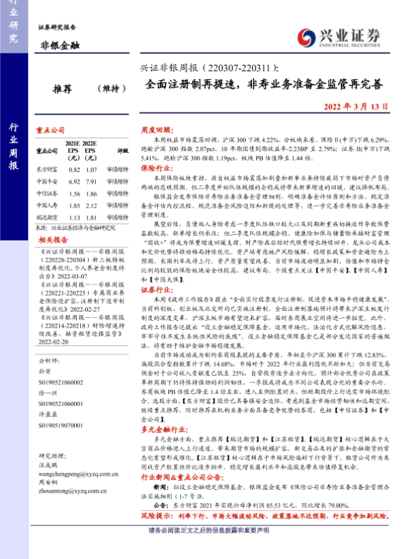 【兴业证券】【20220313】全面注册制再提速,非寿业务准备金监管再完善-15页 行业研究