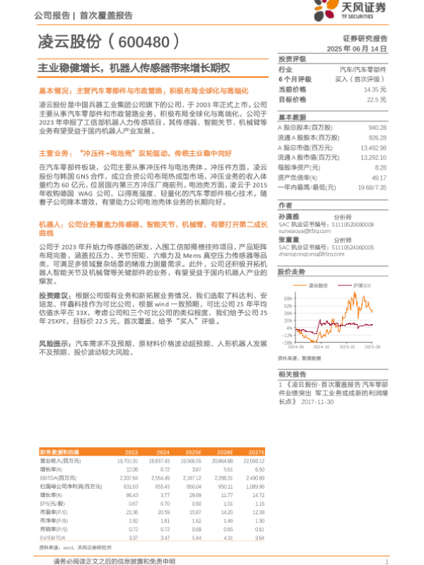 【天风证券】【20250614】凌云股份-主业稳健增长_机器人传感器带来增长期权-12页 公司研究