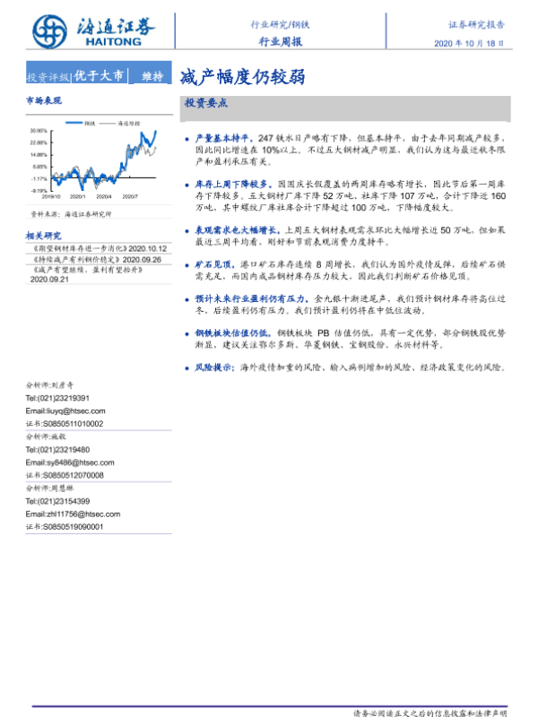 【海通证券】【20201018】20201018-海通证券-钢铁行业周报:减产幅度仍较弱-13页 行业研究