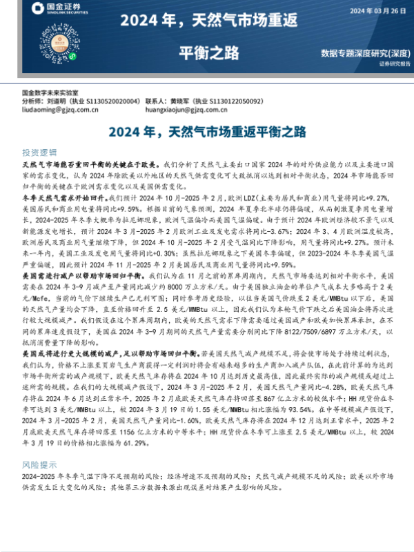 【国金证券】【20240326】数据专题深度研究:2024年,天然气市场重返平衡之路-24页 行业研究