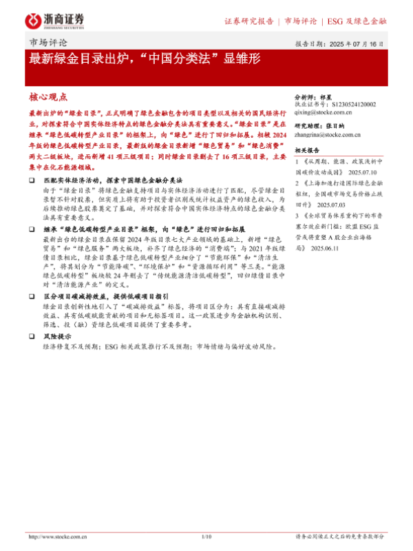 【浙商证券】【20250716】市场评论:最新绿金目录出炉,“中国分类法”显雏形-10页 证券期货研究报告