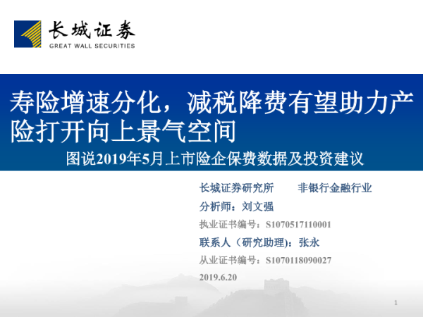 【长城证券】【20190620】图说2019年5月上市险企保费数据及投资建议-23页 行业研究