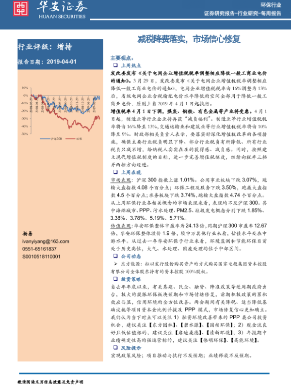 【华安证券】【20190401】环保行业:减税降费落实,市场信心修复-11页 行业研究