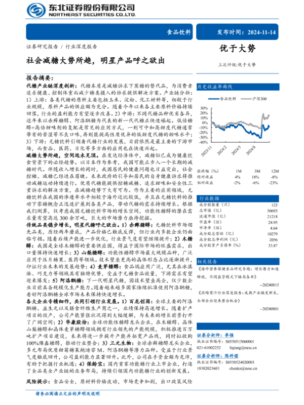 【东北证券】【20241114】食品饮料行业深度报告:社会减糖大势所趋,明星产品呼之欲出-56页 行业研究