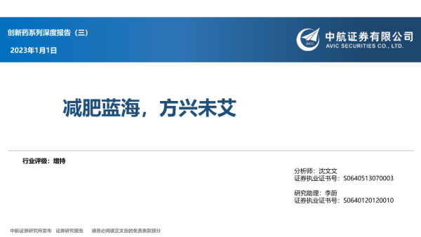 【中航证券】【20230101】创新药系列深度报告(三)-减肥蓝海-方兴未艾-43页 证券期货研究报告