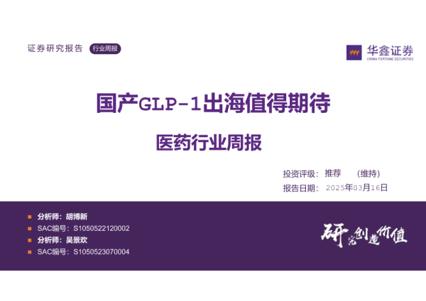 【华鑫证券】【20250320】医药行业周报:国产GLP-1出海值得期待-32页 行业研究
