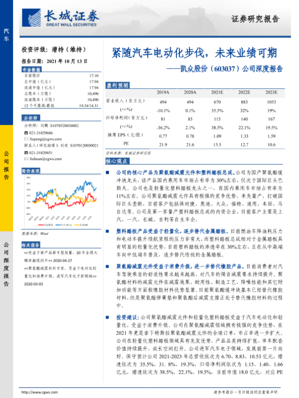 【长城证券】【20211013】20211013-长城证券-凯众股份-603037.SH-公司深度报告:紧随汽车电动化步伐,未来业绩可期-15页 行业研究