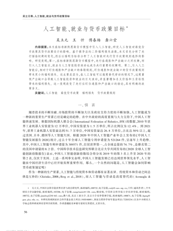 【中国社会科学院世界经济与政治研究所】【20230101】人工智能、就业与货币政策目标-17页 行业研究