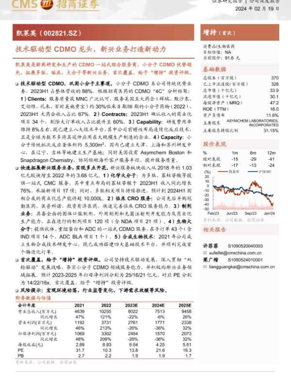 【海通证券】【20240219】技术驱动型CDMO龙头,新兴业务打造新动力-18页 行业研究