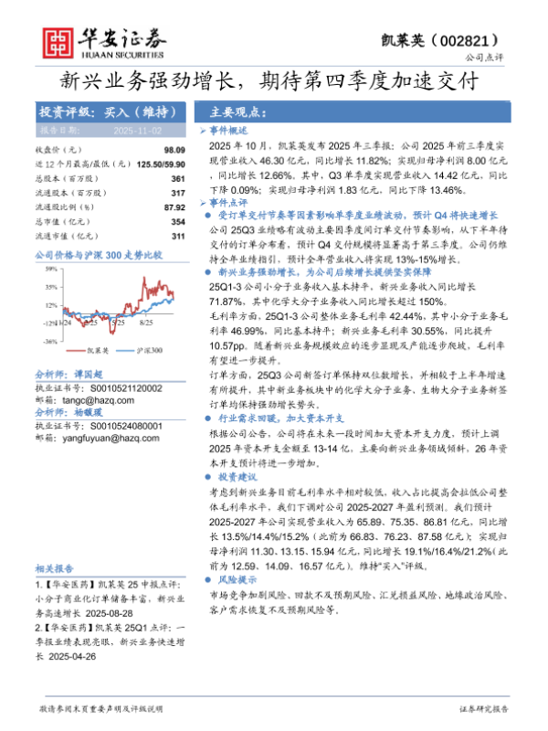 【华安证券】【202511】新兴业务强劲增长,期待第四季度加速交付-4页 证券期货研究报告