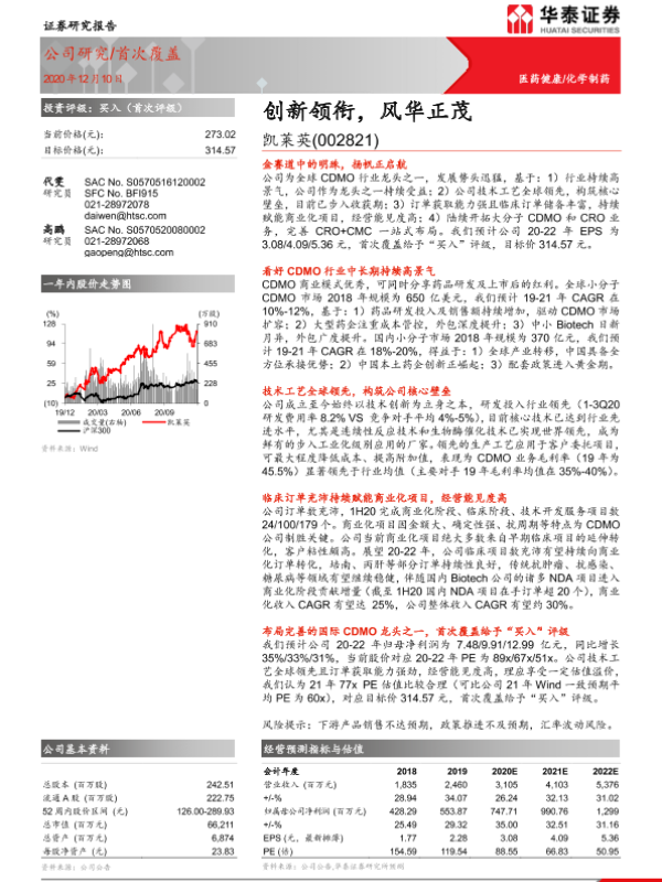 【天风证券】【20210408】20210408-天风证券-凯莱英-002821.SZ-独具匠心、稳健行远的CDMO平台-22页 行业研究