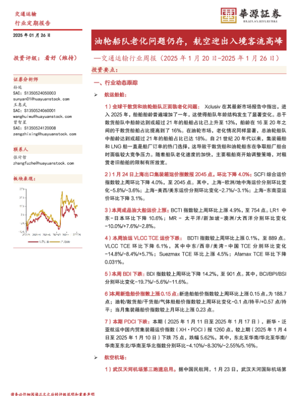 【华源证券】【20250126】交通运输行业周报:油轮船队老化问题仍存,航空迎出入境客流高峰-15页 行业研究