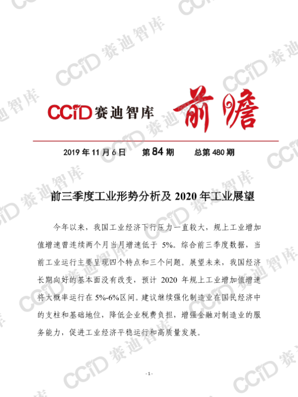 【赛迪智库】【20191106】前三季度工业形势分析及2020年工业展望-11页 行业研究
