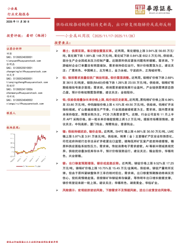 【华源证券】【202511】供给收缩推动钨价创历史新高,出口修复预期锑价或底部反转-11页 证券期货研究报告