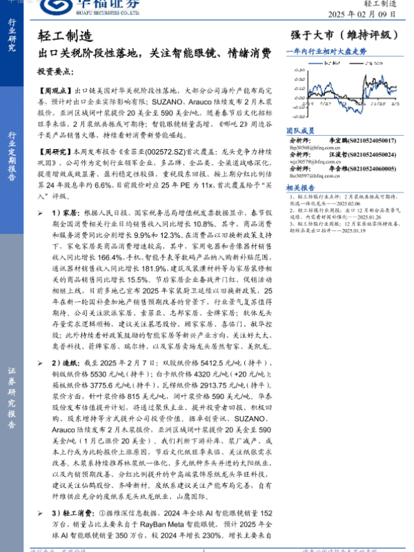 【华福证券】【20250222】轻工制造:出口关税阶段性落地,关注智能眼镜、情绪消费-20页 行业研究